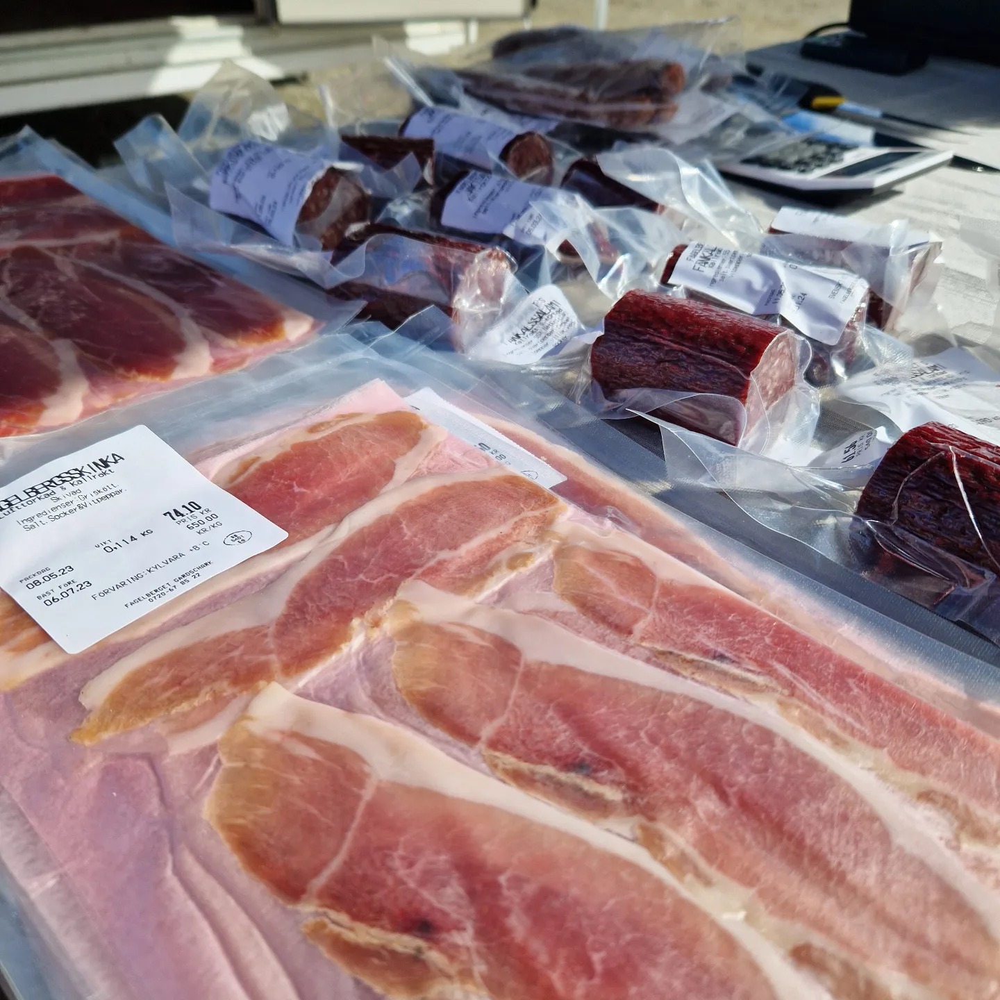 Vår torkade skinka och salami tillverkas med stor omsorg. Varje bit får mogna i sin egen takt för att utveckla djup smak och perfekt konsistens. Köttet kommer från älg, ren och björn – allt närproducerat på Jämtland. Resultatet är genuina delikatesser som berättar historien om hantverk, tålamod och äkta smak.